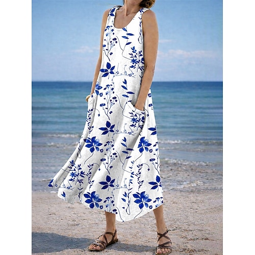 Per donna Abito Midi Vestito Estivo Abito a trapezio Vacanza Casual Boho Ferie Vestibilità comoda Floreale Grafico Senza Maniche Collo a U Blu Rosso Viola Verde Estate Primavera