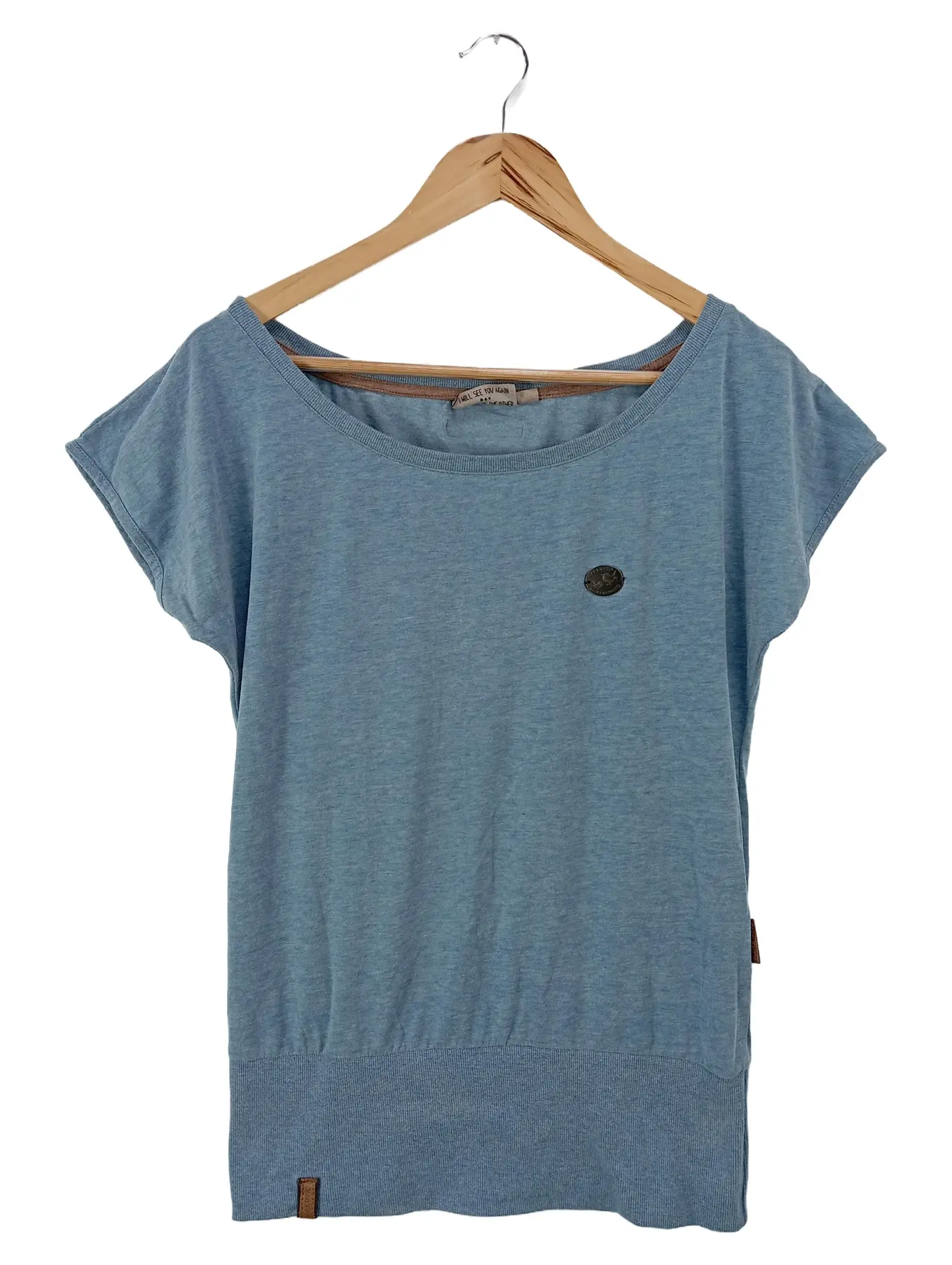 T-Shirt ELBSAND "Ranva", Damen, Gr. XL (42), blau (blau meliert), Jersey, Obermaterial: 50% Baumwolle, 50% Polyester, meliert, figurumspielend hüftlang, Rundhals, offene Kante, Shirts T-Shirt, mit Logodruck, Kurzarmshirt aus Baumwoll-Mix, sportlich