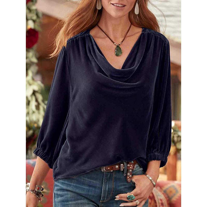 Women's Blouse Solid Color Stylish Casual 3/4 Length Sleeve Cowl Neck Regular Tops Daily Purple Fuchsia Orange Spring Fall Winter
