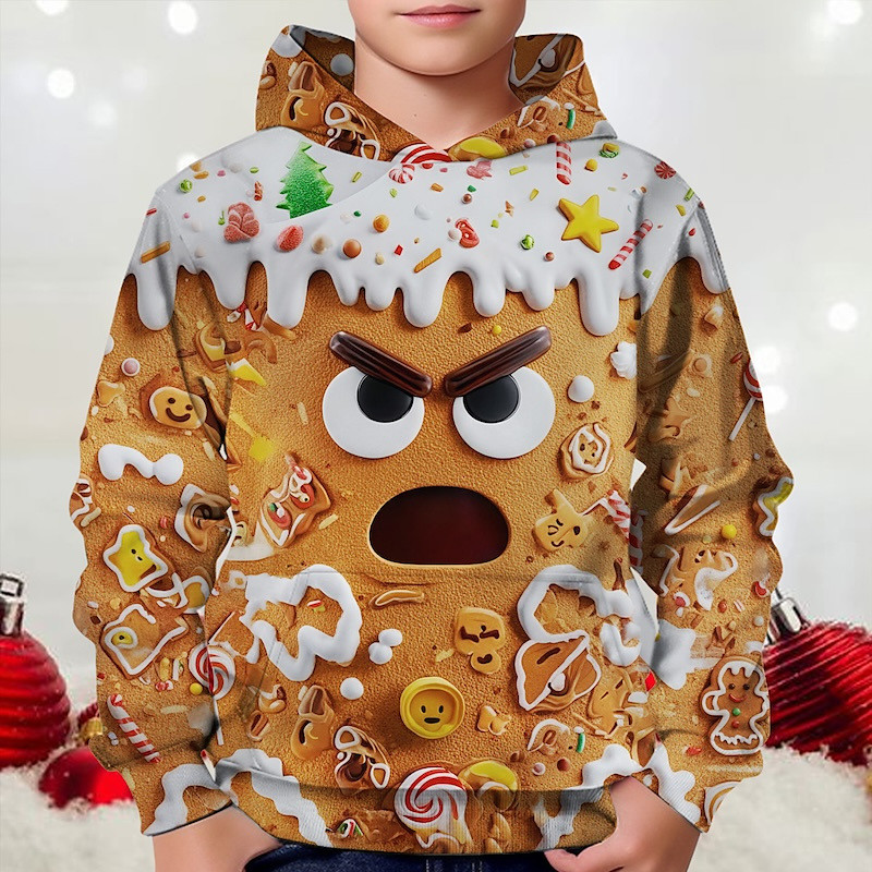 Christmas Boys' 3D Graphic Gingerbread Hoodie Long Sleeve Spring Fall Fashion Streetwear Kids 4-12 Years Hooded Outdoor Casual Daily Regular Fit