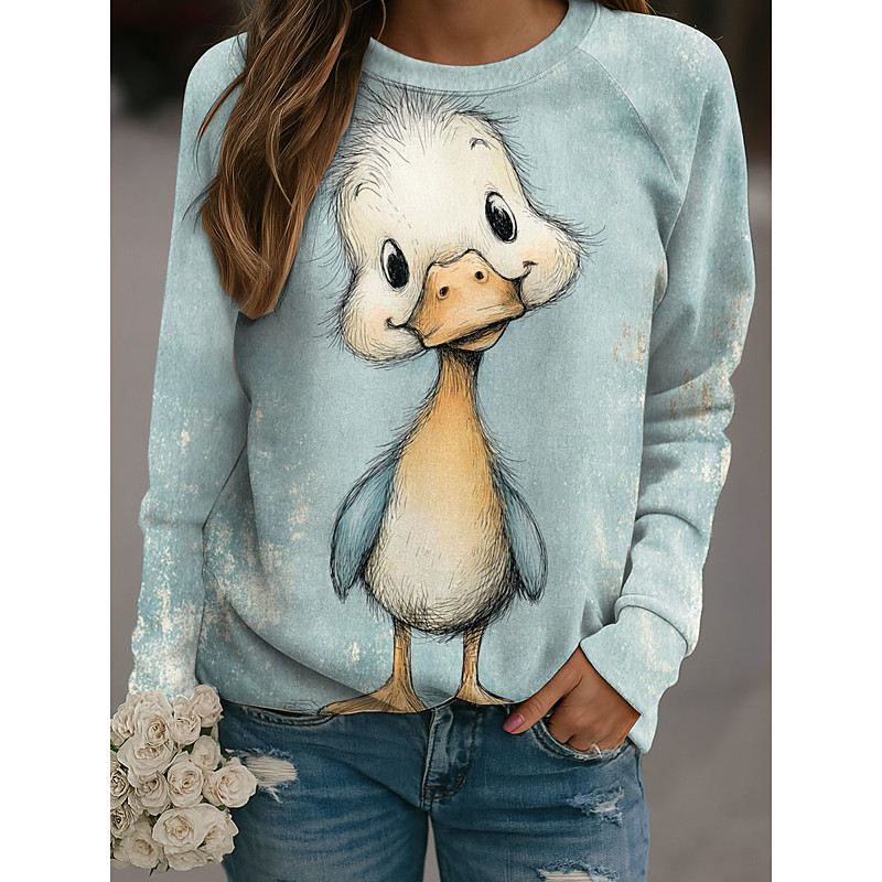 Women's Pullover Graphic Animal Casual Long Sleeve Crew Neck Regular Tops Casual White Yellow Blue Spring Fall Winter