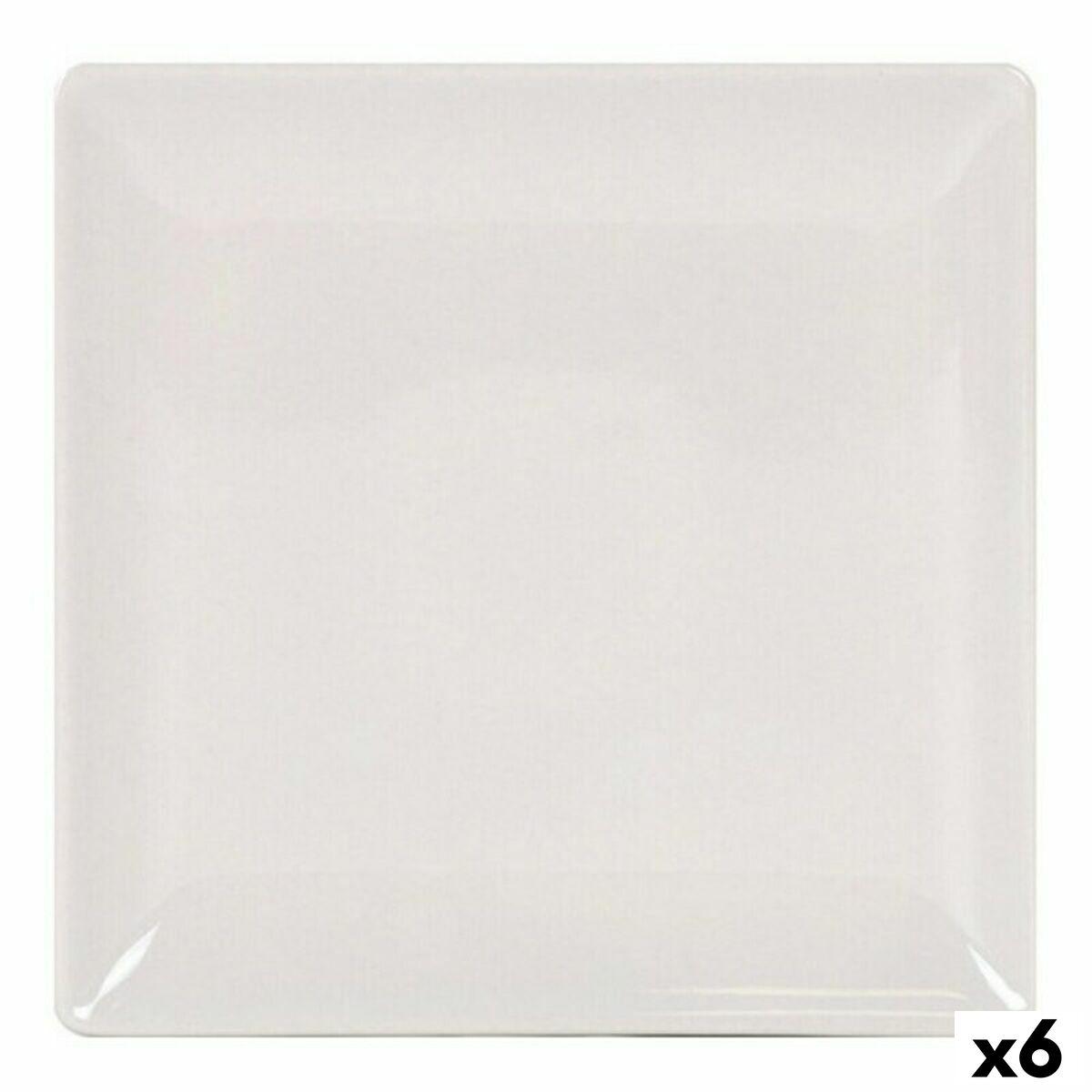 Flad middagstallerken, stentøj, elfenben, 24 × 24 cm - sæt á 6