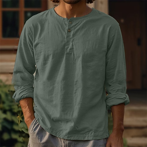Herren T Shirt Henley Shirt langarmshirt Glatt Ständer Casual Festtage Langarm Button-Down Bekleidung Leicht Klassisch Brautkleider schlicht Muskel