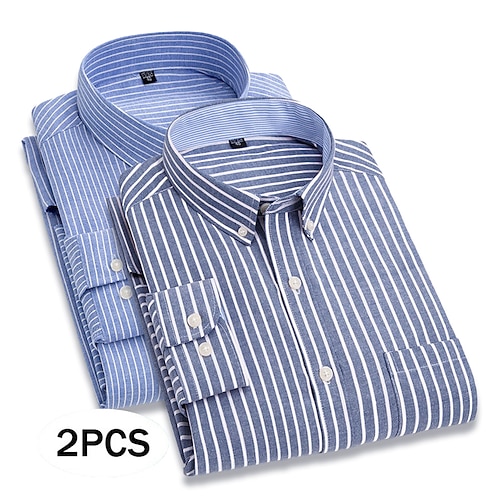 Per uomo Camicia Camicia elegante Camicia button-down Camicia Oxford A righe Quotidiano Affari BluBlu chiaro Rosso grigio Azzurro grigio Viola Blu Manica Lunga Collo ripiegato Tutte le stagioni