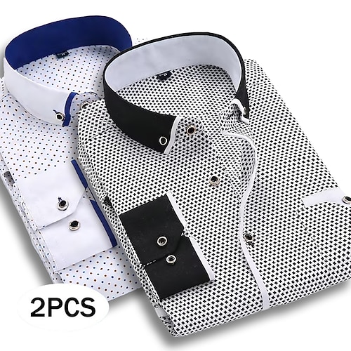 Per uomo Camicia Camicia elegante Camicia button-down Geometrico Casuale Quotidiano Bianco rosso Blu navy nero Blu navy bianco Blu navy rosso Manica Lunga Collo ripiegato Tutte le stagioni