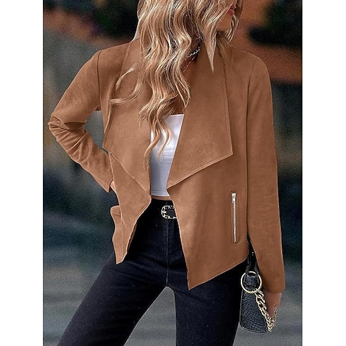 Damen Freizeitjacke Bequem Atmungsaktiv Tasche Mode Lässig Einfach Urlaub Straße Lässig Alltagskleidung Offene Vorderseite Kurz Umlegekragen Normale Passform Langarm Oberbekleidung Marineblau Schwarz
