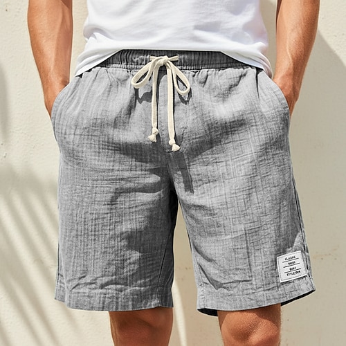 Herren Shorts aus Baumwollleinen Tasche Kordelzug Elastischer Bund Einfach Komfort Atmungsaktiv Kurz Urlaub Schwarz Weiß