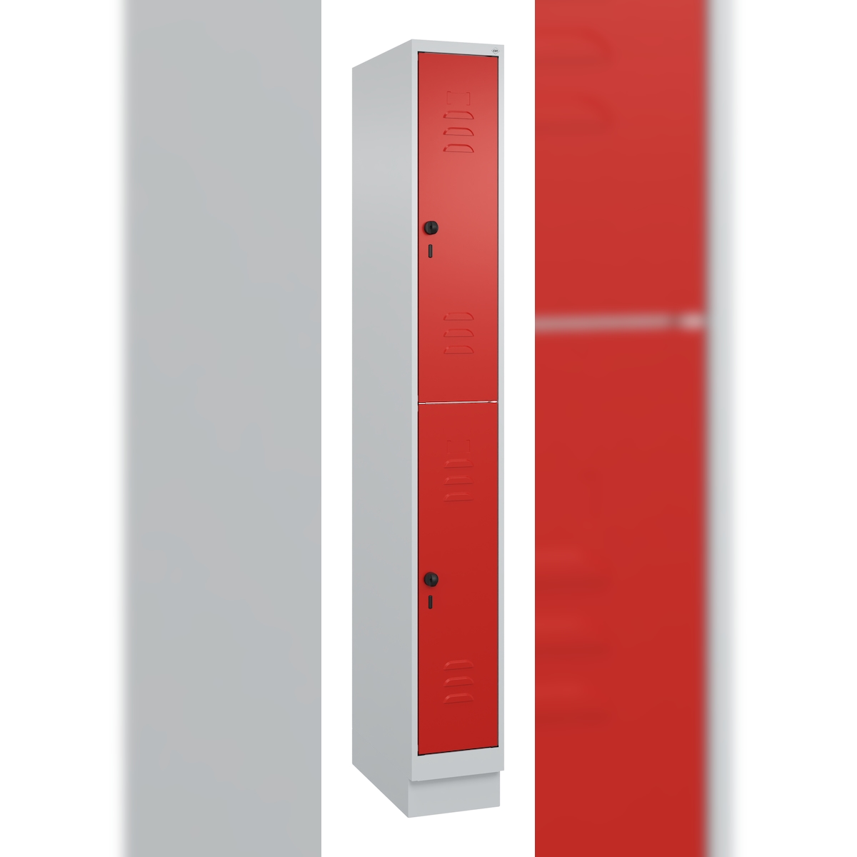 C+P Spind Classic PLUS, Sockel, 2 Abteile, HxBxT 195x25x50cm, Sicherheitsdrehriegel, Hellgrau/Rot von PROREGAL