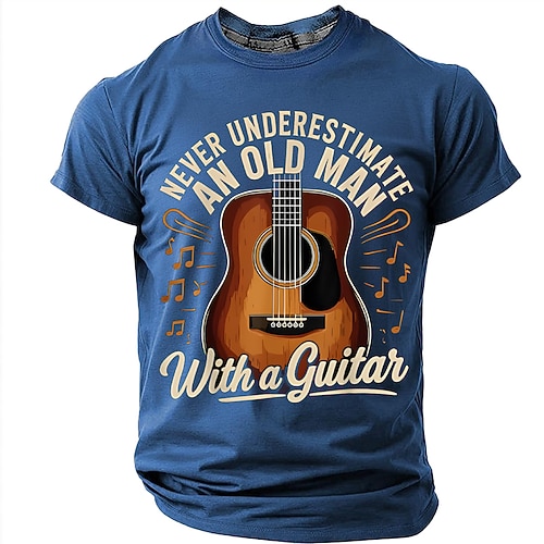 Non sottovalutare mai un vecchio con una chitarra, chitarra acustica, note musicali, t-shirt vintage retrò, grafica, vestibilità regolare, regalo per la festa del papà, abbigliamento firmato, taglie