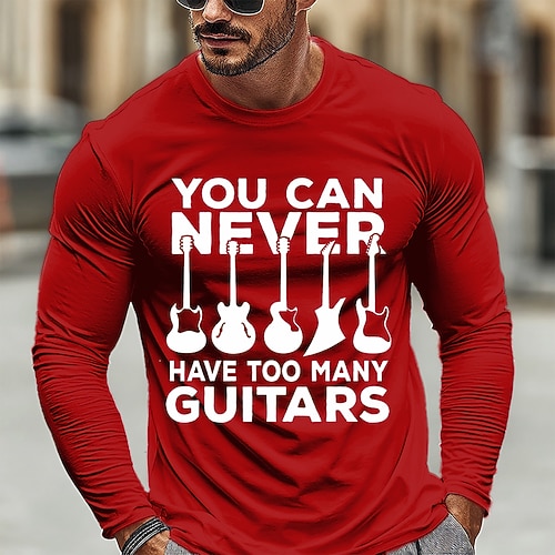 Herren Gitarre Lustiger Slang T Shirt Langarm T-Shirt 3D-Druck Rundhalsausschnitt Hemd Mode Täglich Basic Lässig Täglich Straße Blau Schwarz Rote Sommer Frühling Bekleidung S M L XL XXL XXXL