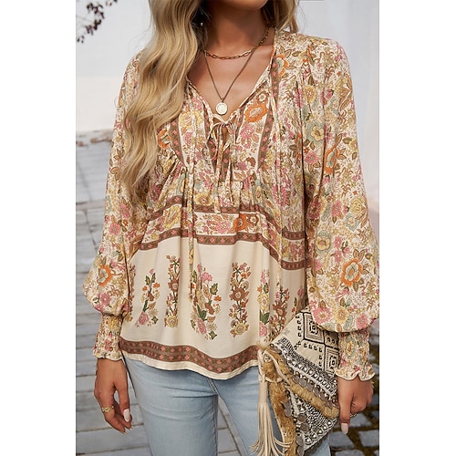 Per donna Camicia Blusa Fiore decorativo Giornaliero Moda Informale Manica lunga A V Top regolari Giornaliero Per eventi Stampa Rosa Blu marino Blu Albicocca Primavera