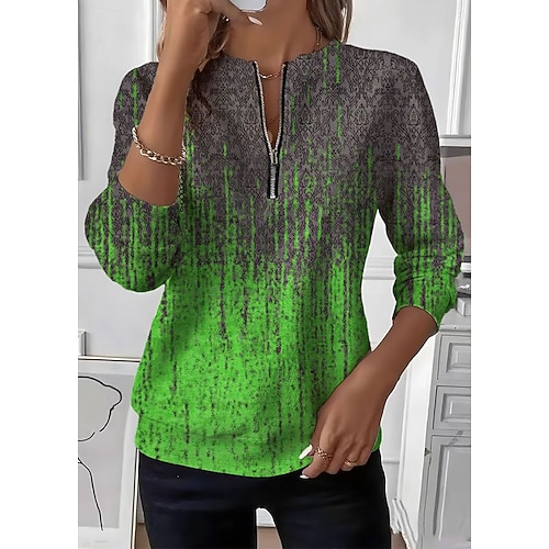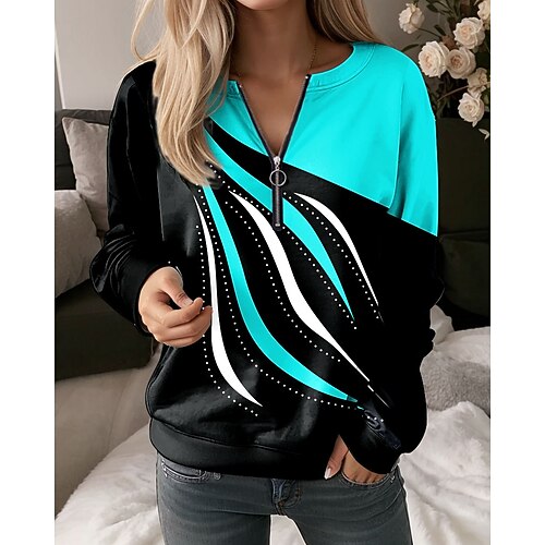 Per donna Felpa Pullover Felpe con cerniera Grafico Geometrico Astratto Moda Casual Manica Lunga Girocollo Top Regolari Streetwear Abbigliamento Quotidiano Cerniera Stampato Rosso Blu Viola Verde