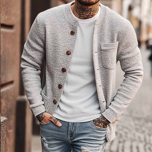 Per uomo Felpa Cardigan A Coste Maglia Top Regolari Lavorato a maglia Semplice Girocollo Vacanza Moda Casuale Abbigliamento quotidiano Abbigliamento Autunno Inverno Grigio S M L