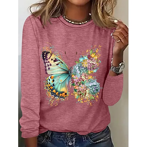 Per donna Maglietta Grafico Animale Farfalla Vintage Moda Elegante Manica Corta Manica Lunga Girocollo Top Regolari Quotidiano Weekend Stampato Nero Bianco Rosa Verde Cachi Estate Primavera Autunno