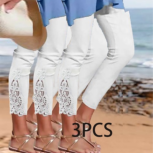 3 pezzi pantaloncini capri da donna leggings leggings comodi vacanza moda costiera stile nonna lunghezza polpaccio tinta unita pizzo comfort elasticizzato vacanza formale strada bianco cenere nero