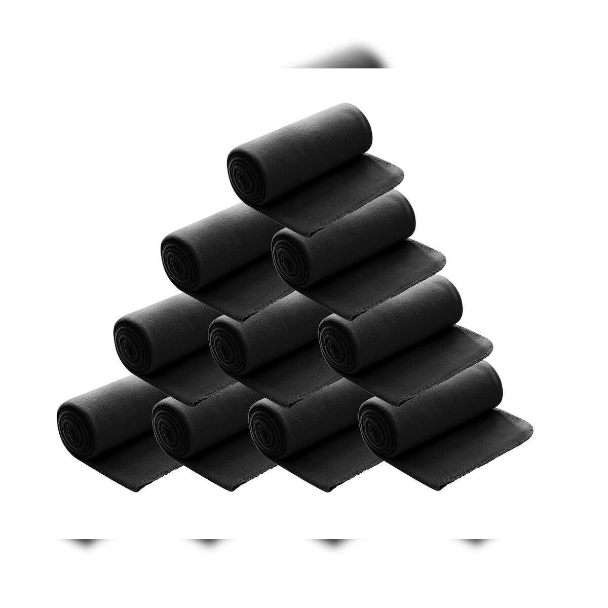 wometo 10er Set Polar Fleecedecke 130x160 cm, OEKO-TEX ca. 400g Gewicht, mit Antipilling & Kettelrand - Farbe schwarz