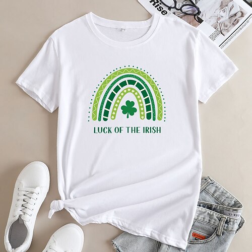 Per donna maglietta Cotone Arcobaleno Trifoglio Festa di San Patrizio Informale Nero Bianco Giallo Stampa Manica corta Di tendenza Rotonda Standard Primavera estate