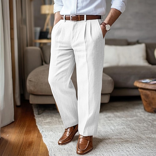 Per uomo Pantaloni di Lino Pantaloni Pantaloni Eleganti Pantaloni Estivi Pantaloni da Spiaggia Gamba Dritta Semplice Comodità All'aperto Affari Quotidiano Streetwear Elegante Nero Blu marino