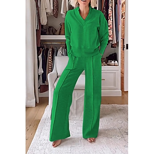 Per donna Moda Streetwear Set di Pantaloni Bolero Top Manica Lunga Scollo a V Tinta unica All'aperto Lavoro Casuale Nero Bianco Rosa Autunno Vestibilità regolare