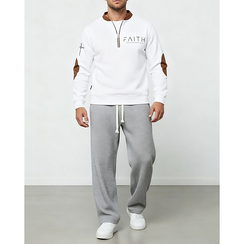 Per uomo Maglia Tuta da Ginnastica Pantaloni da Tuta Set di abiti Collo alla coreana All'aperto Quotidiano Sportivo Coulisse Mezza cerniera Blocco di colori Lettera Blu Nero Bianco Abbigliamento