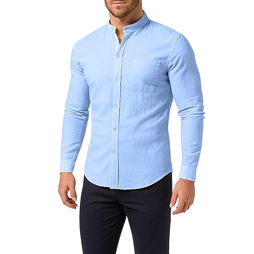 Per uomo Camicia Camicia di lino Camicia di cotone Semplice Quotidiano Abbigliamento casual alla moda Nero Bianco Blu marino Marrone Manica Lunga Colletto alla coreana Primavera Autunno Abbigliamento