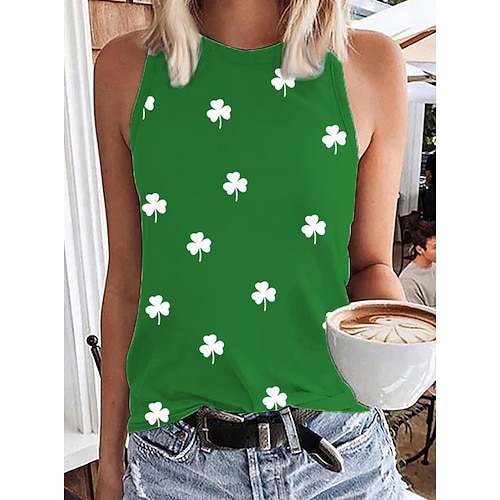 San Patrizio, festa di San Patrizio, maglietta da donna portafortuna, grafica, trifoglio, vintage, tropicale, elegante, senza maniche, girocollo, top normali, quotidiano, nero, bianco, verde, estate,