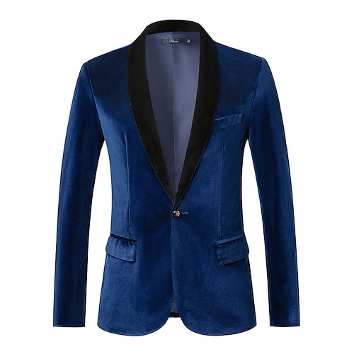 Per uomo Giacca blazer Blazer di velluto Affari Lavoro Festa serale Elegante Caldo Autunno Inverno Tergal Tinta unica Monopetto Giacca Blu Nero Borgogna Viola