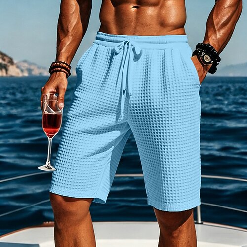 Per uomo Nido d'ape Pantaloncini Waffle Shorts Pantaloncini casual Tasca Elastico in vita Semplice Asciugatura Rapida Sopra il ginocchio Casuale All'aperto Spiaggia Vacanza Moda Blu Nero Elasticizzato
