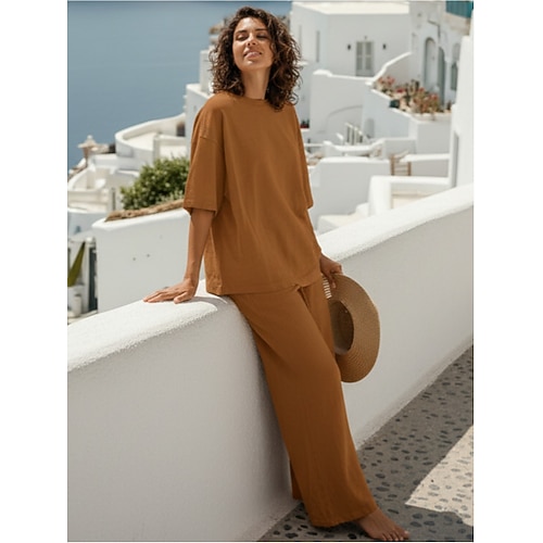 Per donna Abbigliamento da Casa Completi Essenziale Colore Puro Tasca Elastico in vita Maglietta Pantalone Quotidiano Streetwear Manica Lunga Girocollo Blu Nero Bianco Blu marino Marrone chiaro