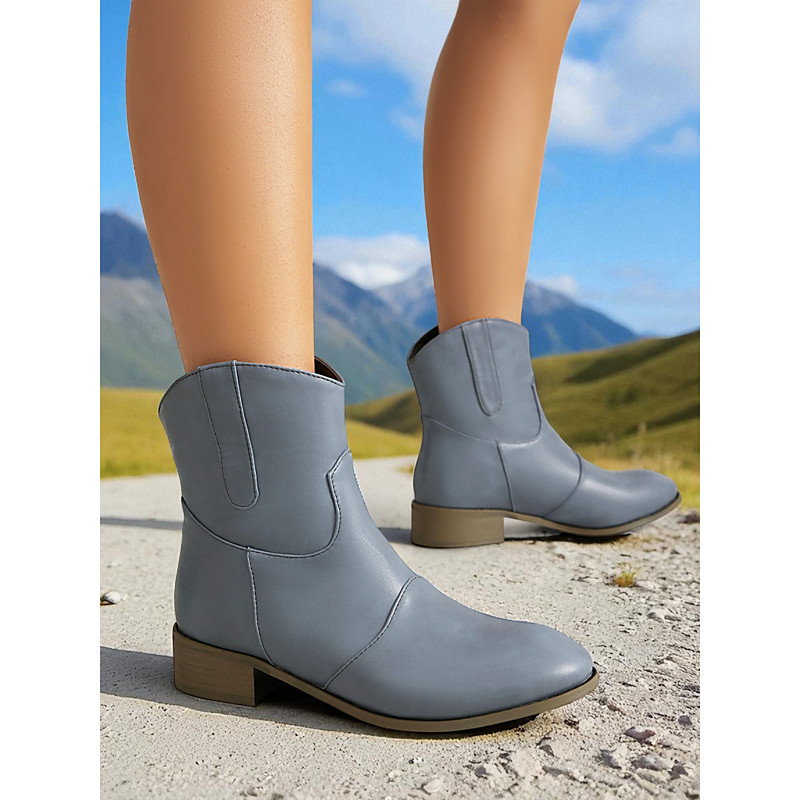 Women's Wine Red Faux Leather Ankle Boots – Casual Western Style Low Heel Short Boots for Work, Travel and Everyday Outfits