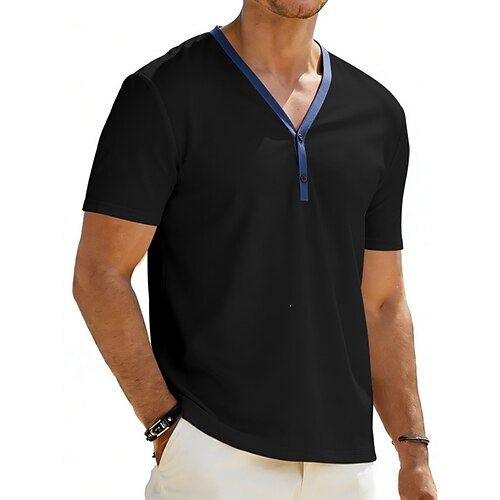Per uomo Maglietta Maglia Henley Camicia a Maniche Corte Manica Corta Scollo a V Estate Primavera Blocco di colori Moda Streetwear Tempo libero Bottoni Quotidiano Vacanza Sport Outdoor Nero Bianco