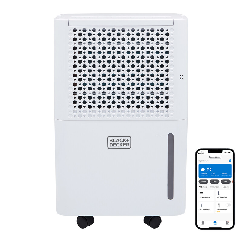 BLACK+DECKER 12L Smart Dehumidifier & Ionizer, 4 Modes, Quiet 38 dB, 2.1L Water Tank, 24 Hour Timer, WiFi App Control - White, BXEH60016GB
