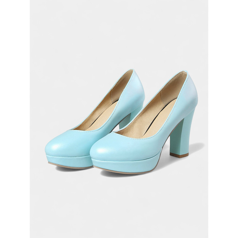 Women's White Platform High Heels, Classic Round Toe Pumps with Chunky Block Heels, Elegant Patent Leather Shoes for Christmas Parties Winter Outfits