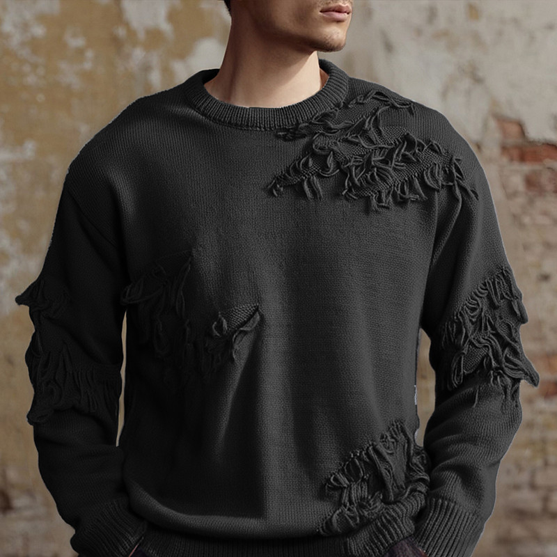 Men's Pullover Sweater Jumper Knit Sweater Ribbed Knit Regular Tops Knitted Ripped Plain Crew Neck Fashion Basic Vacation Daily Wear Clothing Apparel Fall Winter Black Khaki M L XL