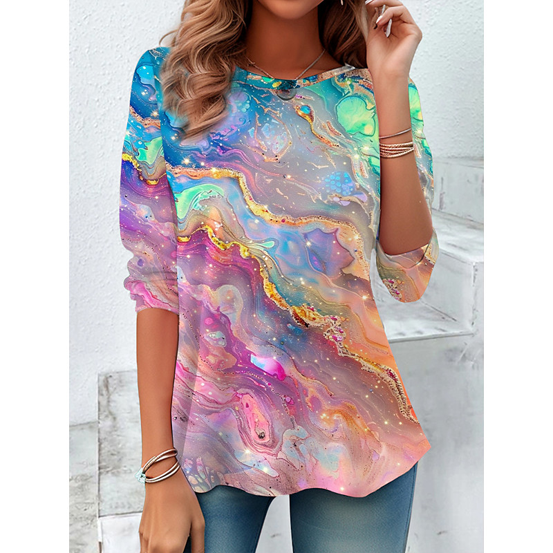 Women's T Shirt Ombre Floral Graphic Vintage Stylish Classic Long Sleeve Crew Neck Round Neck Regular Tops Daily Print Blue Purple Rainbow Spring Fall Winter