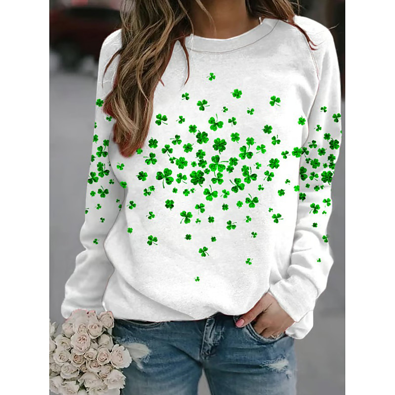 St Patrick's Day Women's Pullover Sweatshirt Floral Graphic Shamrock Casual Long Sleeve Crew Neck Regular Tops Casual Street Black White Light Green Spring Fall Winter