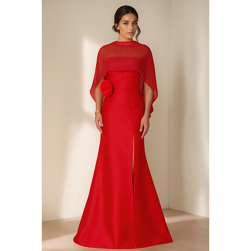 Sheath Column Floor Length Beaded Eembroidered Formal Dresses Mother of the Bride Dress Ball Gown with Cape Evening Gown Formal Dress Elegant Celebrity Style Short Sleeve Crew Neck Garden Party