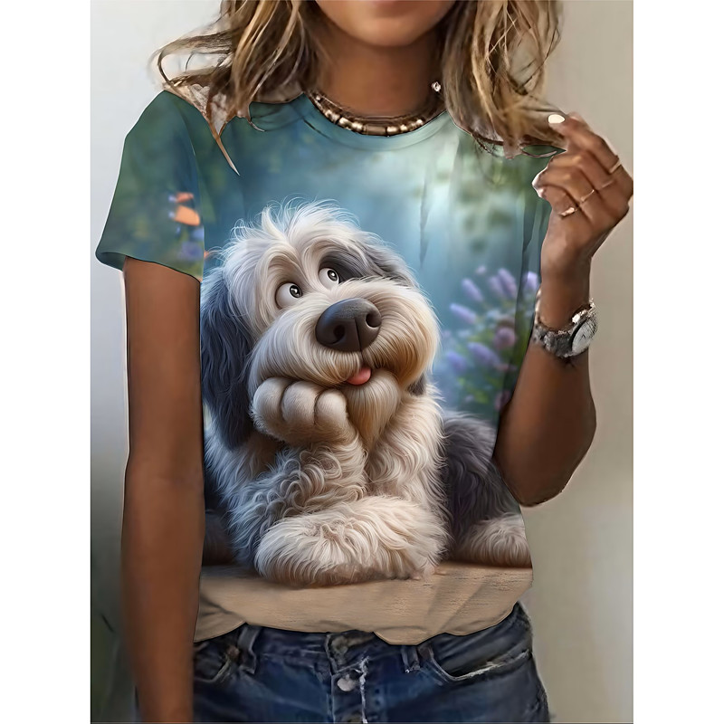 Women's T Shirt Graphic Animal Letter Vintage Stylish Classic Short Sleeve Crew Neck Round Neck Regular Tops Daily Weekend Print Blue Pink Khaki Summer Spring Fall Winter