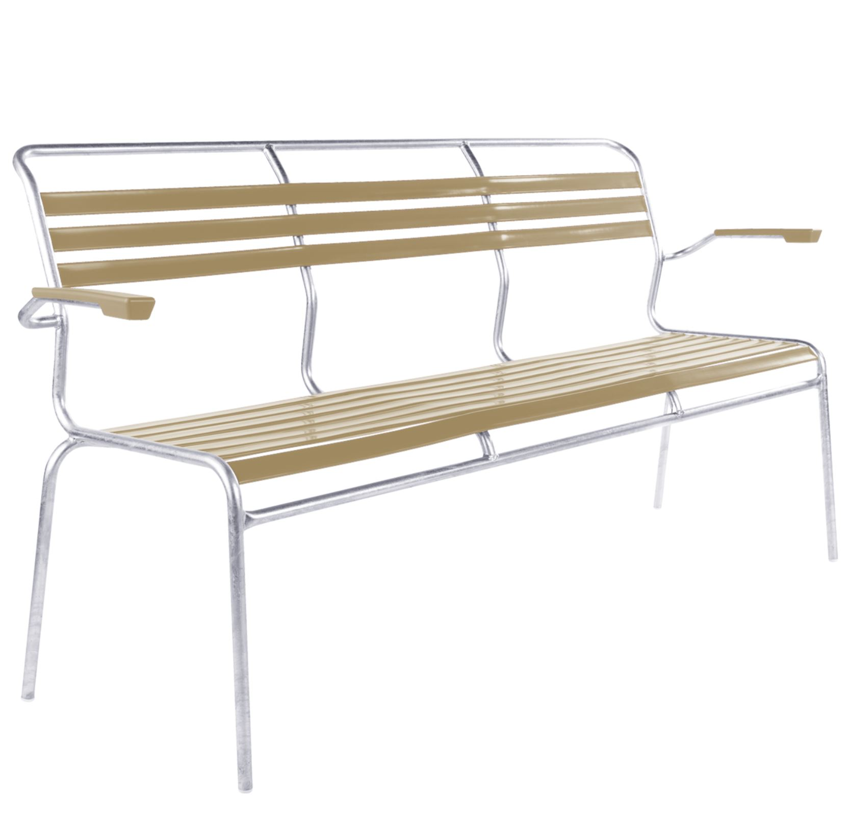 Schaffner Lättli-Bank Säntis mit Armlehnen Feuerverzinkt Braun | Schubiger Möbel