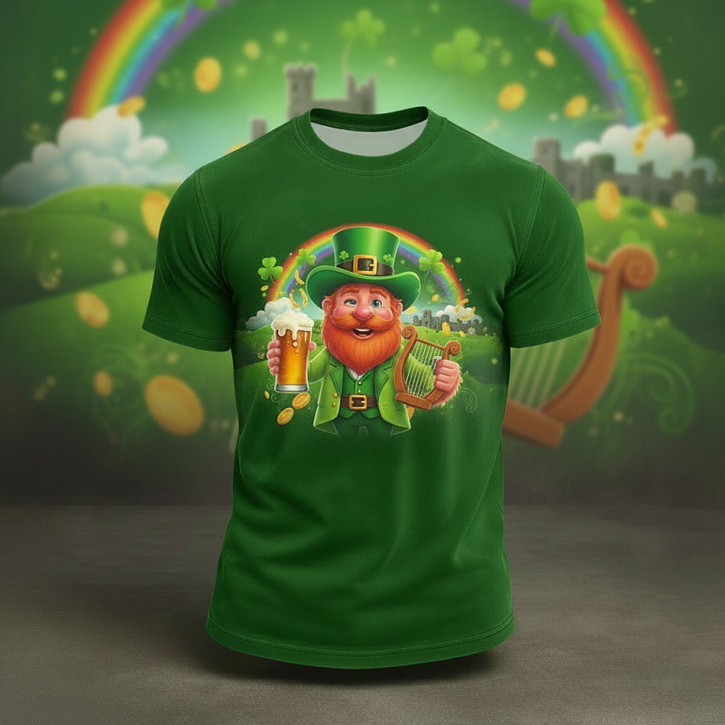 St. Patrick Men's Graphic Oktoberfest Beer T Shirt Short Sleeve Shirt T shirt Tee Tee Top Short Sleeve T shirt 3D Print Crew Neck Shirt Vacation Fashion Designer Party St.Patrick's Day Holiday Green