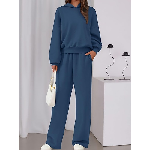 Per donna Set da due pezzi Felpa con Cappuccio Tuta Manica Lunga Con Cappuccio Semplice Sport Moda Streetwear Casuale Quotidiano All'aperto Nero Vino Blu marino Primavera Vestibilità comoda