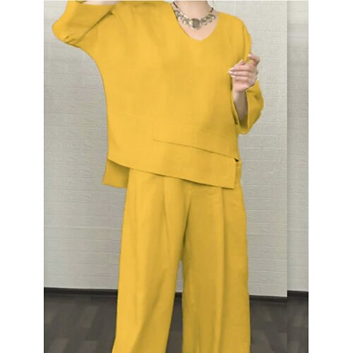 Per donna Set di Pantaloni Bolero Top Finto cotone e lino Manica 3/4 Scollo a V Semplice Moda Streetwear Casuale Quotidiano All'aperto Bianco Giallo Vino Estate Vestibilità comoda
