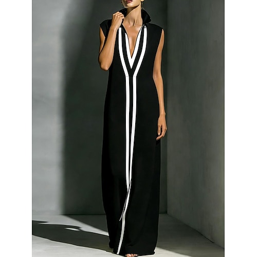 Per donna Abito lungo maxi Vestito maxi Elegante Moderno All'aperto Vacanza Uscire Vestibilità comoda Blocco di colori Senza Maniche Colletto a Camicia Nero Bianco Vino Grigio Estate Primavera