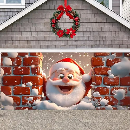 Natale Copertura per porta del garage Grande appeso Regalo Babbo Natale Carino 3D Da serata All'aperto Vacanze Sfondi di ripresa Yarda Arredamento per la casa