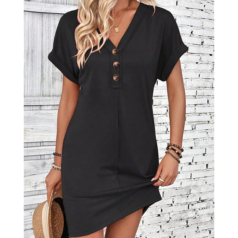 Women's Mini Dress Casual Dress Modern Daily Outdoor Vacation Regular Fit Plain Short Sleeve V Neck Magenta Teal Black Pink Summer Spring
