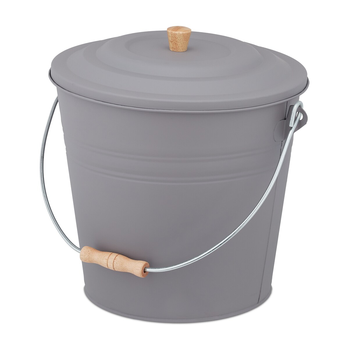 Relaxdays Ascheeimer mit Deckel, 12 Liter, Kamineimer, Stahl & Holz, Aschebehälter mit Henkel, Kamin, Ofen & Grill, grau