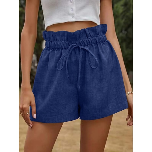 Damen Kunstbaumwollleinen Chinos Shorts Sommershorts Urlaub Mode Streetwear Kurz Hohe Taille Einfach Kordelzug Tasche Elastischer Bund Atmungsaktivität Bequem Atmungsaktiv Unelastisch Täglich Urlaub