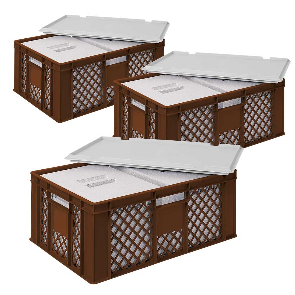 BRB 3x 2 EPS Thermobox in Stapelkorb mit Deckel, LxBxH 600x400x240 mm, braun