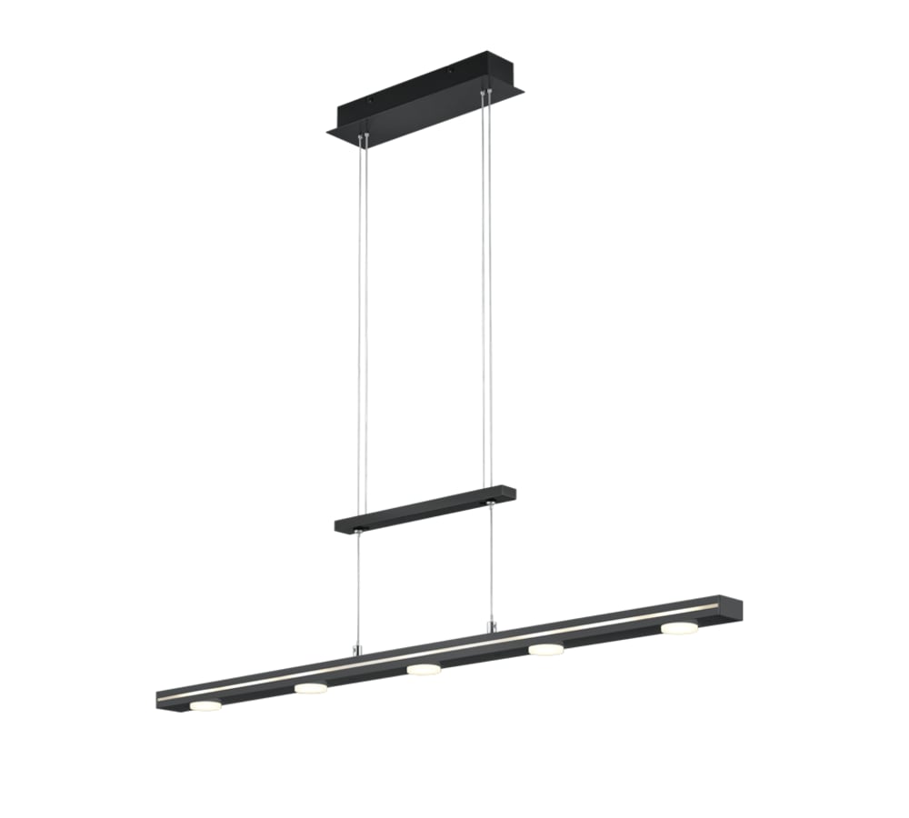 Lampada a sospensione LED 7 luci, metallo, nero opaco, 100x8x160 cm