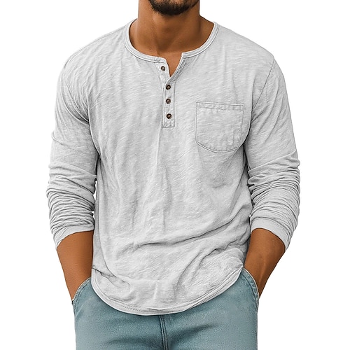 Herren T Shirt Henley Hemd T-Shirt Langarmshirt Langarm Henley Frühling Herbst Einfach Mode Designer Basic Taschen Urlaub Straße Ausgehen Weiß Rote Marineblau Top T-Shirt für Herren